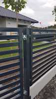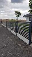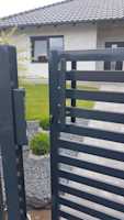 Nierówny teren, różnica wysokości, dla naszej firmy nie ma rzeczy niemożliwych. Potwierdza to realizacja na pagórkowatym terenie na Gładyszewie w Pile. Nasz zakres realizacji to brama, wykonanana w technologii przesuwnej, furtka, ogrodzenie frontowe, wszystkie elementy wykonane w kolorze grafitowym, użyliśmy jasnej podmurówki aby idealnie komponowała się z całością.