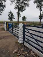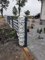 Konstrukcje gabionowe to nowość na polskim rynku, nasza firma uwielbia innowacyjne projekty, jeżeli jesteś indywidualistą, chcesz się wyróżnić to takie rozwiązanie będzie idealne dla Ciebie. Gospodarzą domu na osiedlu kwiatowym w Szydłowie zaproponowaliśmy połączenie typowego stalowego rozwiązania z gabionami zasypanymi białym kamieniem. Wykonaliśmy bramę w systemi przesuwnym, furtkę oraz ogrodzenia frontowe.